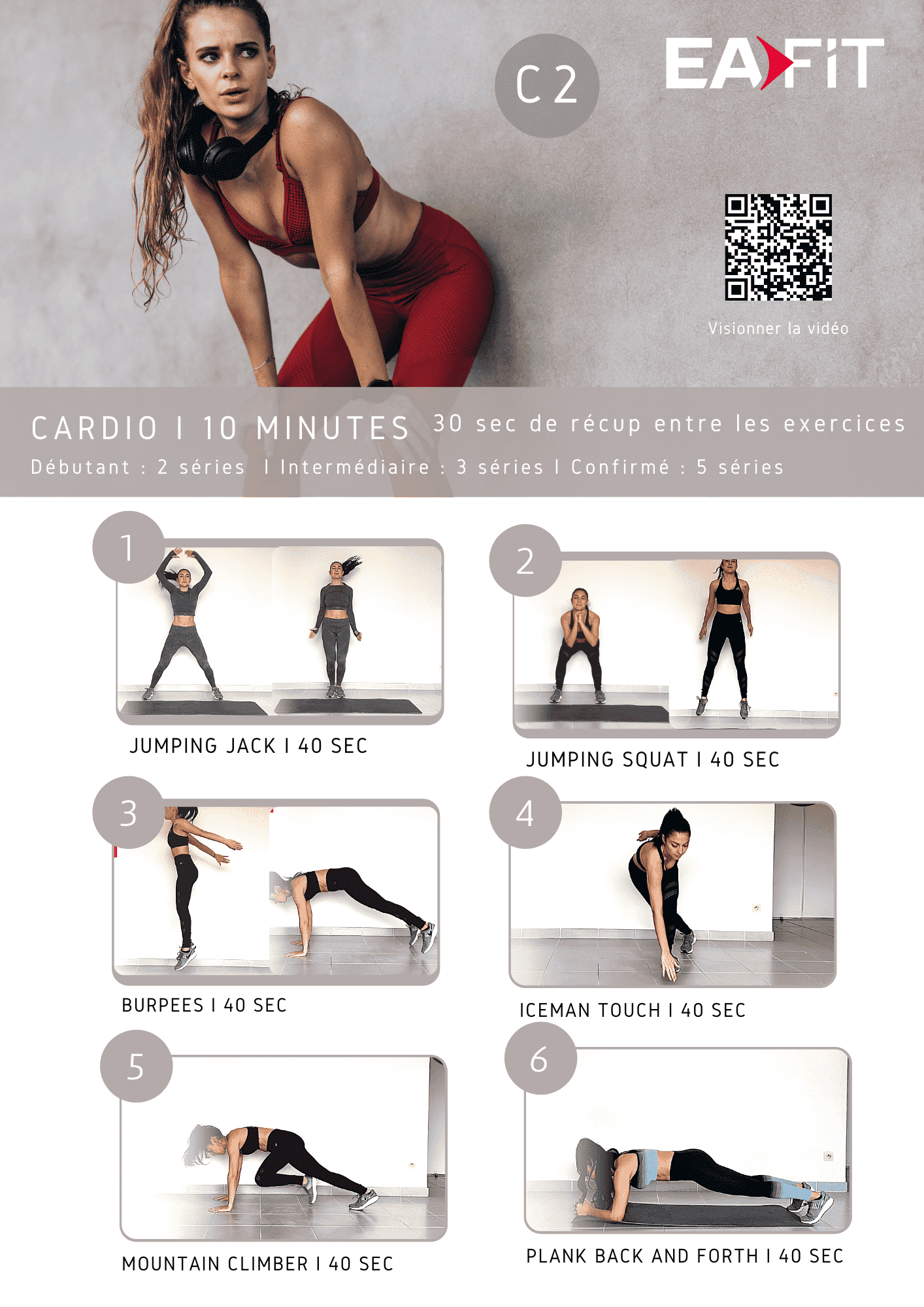 6 exercices, 40 secondes par exercice, 20 secondes de récup entre chaque exercice.